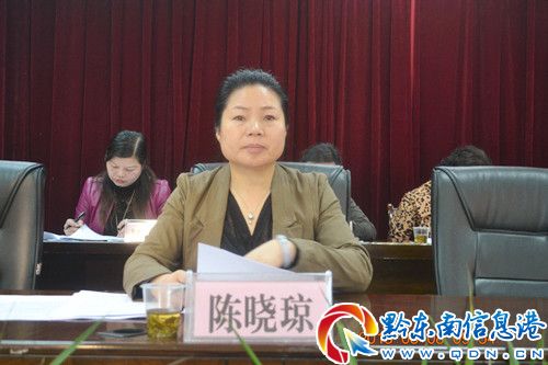 出席此次會議的主要領導有,州委常委、副書記楊華昌,州人民政府副州長劉曉春,州婦聯(lián)主席陳曉瓊,州婦聯(lián)副主席王曉琴、吳永宏,以及黔東南州婦聯(lián)九屆代表大會執(zhí)委,各縣(市、區(qū))婦聯(lián)主席,州直機關各婦委會,女工委、婦女小組負責人,州婦聯(lián)全體干部。會議由州婦聯(lián)副主席王曉琴主持。