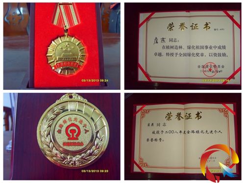 詹燕獲得的榮譽證書和獎章