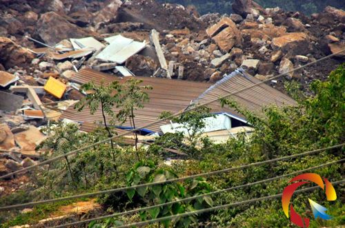 據(jù)了解,在本次巖體崩塌事件中,還有一輛鏟車、一輛雙排座、兩棟房屋以及當?shù)卮迕駰钗漯B(yǎng)殖的30多只羊被掩埋。其中一棟被掩埋房屋是當?shù)卮迕駨埡槲募业摹J掳l(fā)前,張洪文及其家人都已外出,只留下了租住在屋內(nèi)的福建工人楊華師傅。