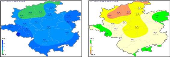 圖2 黔東南州16縣市2013年6月降水量、降水距平百分率