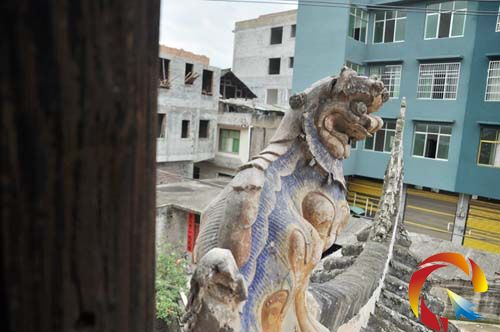 始建于清道光年間的貴州省榕江縣車江車寨鼓樓上的動(dòng)物雕塑。