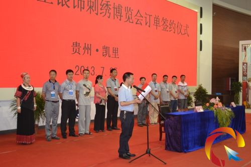 7月25日上午,第二屆中國·凱里銀飾刺繡博覽會訂單簽約儀式在凱里苗侗風情園舉行。儀式現場,參加本屆銀飾刺繡博覽會的參展商與有關客商進行了集中簽約。儀式由凱里市委常委,市人民政府常務副市長楊承進主持。凱里市人大常委會常務副主任付玲出席儀式。