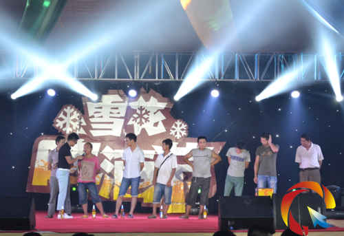 隨著主持人的倒計時,晚上20時整啤酒節正式開始,伴隨著經典老歌《歌唱祖國》,啤酒節拉開序幕。晚會精彩不斷,從“黑貓”的歌曲串聯及吹啤酒表演,到雙胞胎兄弟表演的《力量美》表演,再到雪花啤酒節酒王爭霸賽、肚皮舞和民族舞蹈精彩演出等。讓現場觀眾歡呼聲和掌聲不斷。