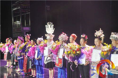 最后,州市領導向榮獲“百佳繡娘”榮譽獎項的繡娘和榮獲銀飾刺繡獎項作品進行頒獎。(李迅)