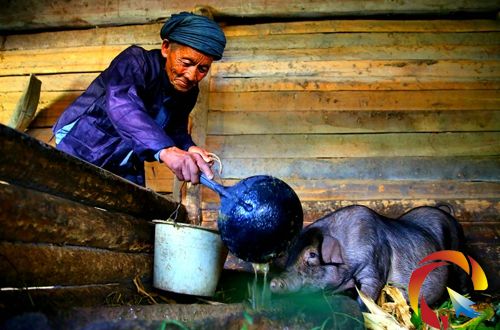 近日,記者到加退村,采訪了祝老華老人。在人們的印象中,百歲老人都坐在火塘邊或走廊上閉目養(yǎng)神,偶爾也會(huì)手持拐杖艱難行走……祝老華則不是這樣,記者見(jiàn)到他的時(shí)候,老人正在一樓下喂豬食,完畢,還抱了一些柴禾到灶爐邊生火。