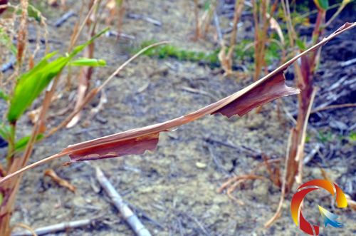 此外,很多玉米沒有葉片,只有光溜溜的枝干。王伯才說,枝干上的葉片,被這種不明的害蟲吃光了。還有一些枝干上的葉子只有局部被啃,留下了一道或者多道不規則的口子。