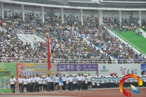 鮮艷的五星紅旗和全州運動會會旗、本屆運動會會旗在英姿颯爽的旗手護送下走進體育場。隨后入場的是裁判員代表方隊,接著20個代表團的運動員代表依次入場,參加本次盛會的運動員來自我州16個縣市和凱里軍分區、凱里學院、黔東南民族職業技術學院、貴州電子信息職業技術學院。現場氣氛熱烈,精神抖擻的裁判員、運動員向觀眾揮手,熱情的觀眾報以陣陣掌聲。運動員、裁判員入場完畢后,全場起立,鮮艷的五星紅旗在雄壯的國歌聲中冉冉升起、迎風飄揚。