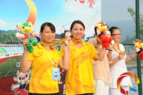 據(jù)悉:本次運動會劍河縣共派出6名選手(3男3女)參加網(wǎng)球單、雙打項目比賽,分男、女雙打各一組,男、女單打各一組。女子雙打楊桂蘭、邰昌蘭組合通過淘汰凱里代表隊后,不敵黎平代表隊而位居第二名,為該縣贏得第一枚銀牌。
