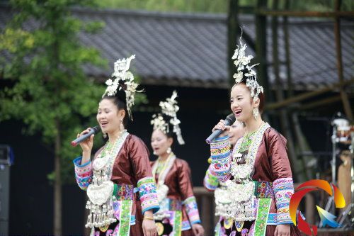 黎平縣侗族姑娘在“鄉(xiāng)村音樂周”現(xiàn)場演唱侗族大歌