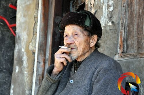 黃平百歲老人吳征福老人在抽煙