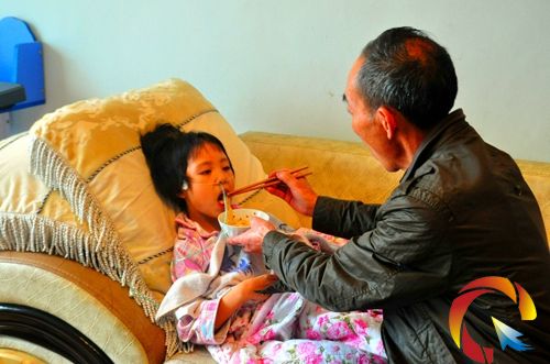 張文琦的外祖父正在給她喂飯