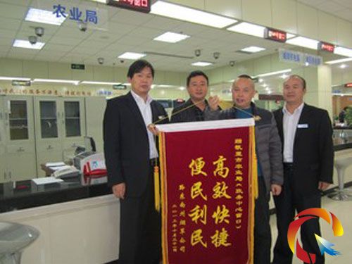 10月21日,黔東南州煙草公司派代表來到政務中心市農業局辦證窗口,將一面印有“高效快捷,便民利民”的大紅錦旗送到窗口工作人員手中,感謝市農業局辦證窗口多年來給予該公司的支持和幫助。