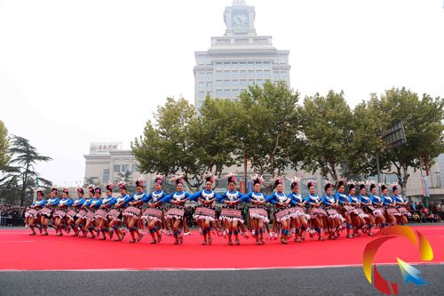 在踩街展演活動(dòng)中,27個(gè)展演方陣沿著張家港市主干道進(jìn)行熱情匯演,匯聚成了一條各民族特色混為一體的炫彩長龍,吸引了眾多市民的駐足觀看。期間,苗族錦雞姑娘們還與道路兩旁的市民及工作人員“親密接觸”,并送上秀美的苗家蠟染香包和苗家刺繡花腰帶,表達(dá)貴州省各族人民的真誠問候。