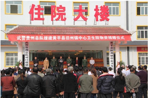 11月19日下午,武警貴州總隊援建黃平縣舊州鎮中心衛生院物資捐贈儀式在舊州鎮中心衛生院舉行。武警貴州總隊王科富副政委、政治部秘群處蔡勝華處長、黔東南支隊李先江政委、武警貴州總隊醫院李紅忠政委、州人民政府劉曉春副州長、州人民政府王蕾副秘書長、州衛生局江建強局長以及黃平縣委書記吳克等領導出席捐贈儀式。