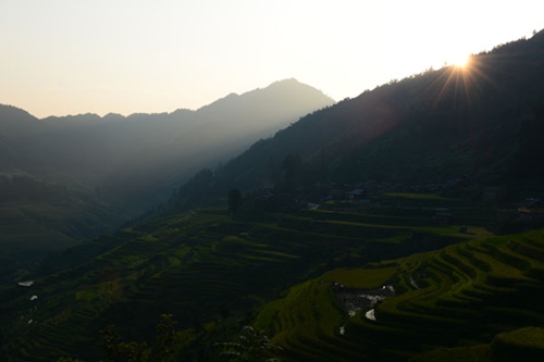 月亮山巖寨苗寨日出。(唐萍 攝)