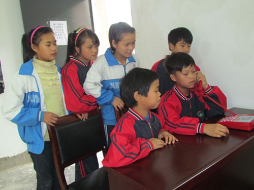 11月4日,榕江縣栽麻中學(xué)留守兒童在“留守兒童和空巢老人服務(wù)點(diǎn)”給親人打電話。石仲 攝