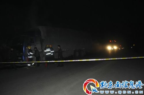 2013年1月18日晚上19時14分左右,施秉縣城關鎮一堵墻分岔路口處一輛大貨車在行駛途中突然起火,車上載運貨物為十余噸的木材。