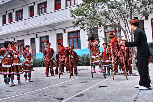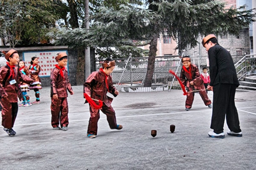 三穗縣桐林小學(xué)為了激發(fā)學(xué)生的興趣,自今年9月新學(xué)期開學(xué)以來,該校將諸多侗族文化元素引進(jìn)校園,增設(shè)侗語課教學(xué)、開設(shè)侗族山歌舞蹈特長班,把鞭笞陀螺、踢毽子,高腳馬、押加、射箭、滾鐵環(huán)等民族體育項(xiàng)目列為體育課的主要內(nèi)容,既豐富了學(xué)生的校園文化生活,又傳承了侗族文化。