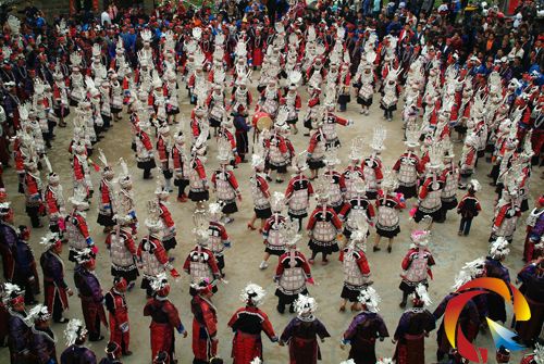 施洞的苗族舞蹈以踩鼓舞為主,是施洞苗族民間最傳統、最常用的舞蹈,舞蹈者多為銀飾盛裝的青年女子。由于苗族銀飾盛裝十分沉重,施洞踩鼓并不象反排木鼓舞那么激情奔放,它展示的是姑娘們的婀娜多姿和華美的盛裝。施洞美名在外,在很大程度上是因為施洞的銀飾刺繡尤其是銀飾盛裝特別引人矚目。(馬業波)
