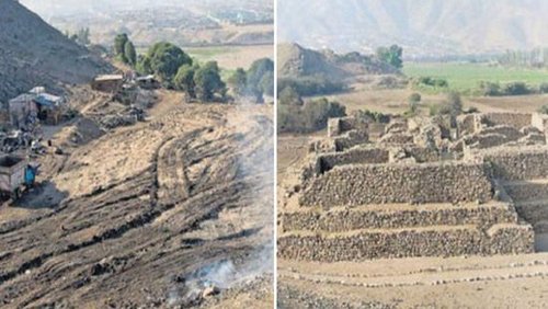 5000年歷史的金字塔被建商夷平(左圖,右為原貌),秘魯政府震怒。
