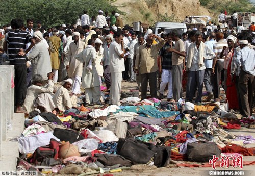 為慶祝印度杜爾加女神節,約50萬名印度信徒前往達蒂亞地區一座寺廟朝拜。期間,一些朝拜者企圖插隊,故意散布排隊者所在的“大橋快要斷了”的謠言,造成民眾恐慌并釀成踩踏事件