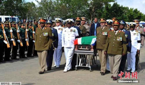 當地時間12月14日,曼德拉的靈柩抵達下葬地庫努。