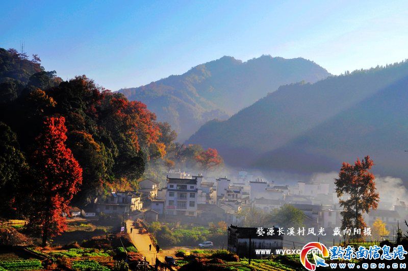 長溪,位于婺源縣北西南賦春鎮,由于地處極其僻遠的山村,這是旅游團隊不會到的地方,就是到了婺源,在當地人也難問到這個村莊的位置,客人們稱其為世外桃源,建村于宋淳化公元992年。村里民居大部分為晚清建筑,高大的馬頭墻,在青山藍天、小橋流水、青磚黛瓦映照之下、構成一幅幅恬靜自如、天人合一的畫卷,由于交通不便,這里的徽派建筑還保存得完好,村莊具有典型的徽派建筑特色。每到深秋,村莊前后有二百多株連片生長幾百年的香楓樹就會一片火紅,高大的紅楓與白墻黑瓦馬頭墻掩映為一體,形成別具特色的紅楓林景觀。