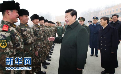 新華網北京1月29日電(記者李宣良、張東波)中華民族的傳統節日春節來臨之際,中共中央總書記、中共中央軍委主席習近平29日到武警部隊視察,代表黨中央、國務院和中央軍委,向武警部隊全體官兵致以節日的問候。他強調,武警部隊要牢記使命責任,全面貫徹落實黨的十八大精神,全面加強革命化現代化正規化建設,不斷提高履行使命任務能力,確保完成以執勤處突為中心的各項任務,確保部隊高度集中統一和安全穩定,努力建設一支聽黨指揮、能打勝仗、作風優良的現代化武裝警察部隊。