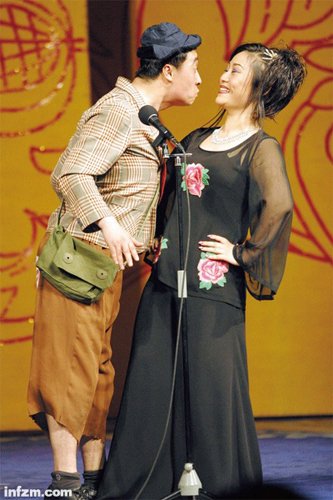 2004年初,張小飛(左)在央視“首屆喜劇小品大賽”頒獎晚會上,因露背,順著腰帶往褲子里扇風(fēng),節(jié)目被終止,趙本山為徒弟鳴不平。當(dāng)年《馬大帥》沒在央視首播,有人認(rèn)為是張小飛事件得罪了央視。