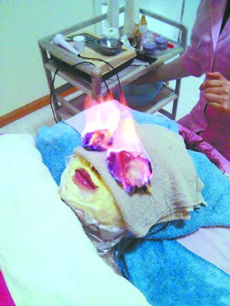 花卉園西路一美容院的店長告訴記者,用烈火炙烤皮膚這種美容方式叫火療,但一般僅用于背部,她還是第一次聽說有用火療來炙烤眼睛的。對于照片中女士臉上如何燃起火來,該店長表示,女士臉上鋪著濕毛巾隔絕熱度,再在眼睛附近放上兩個(gè)錫紙容器,倒入一點(diǎn)酒精后,點(diǎn)上火后就會(huì)起到炙烤效果,“這種方法主要用于活血,但很危險(xiǎn),在背部使用這種方式活血,稍微掌握不好都會(huì)燙起泡,眼睛更脆弱,太冒險(xiǎn)了”。