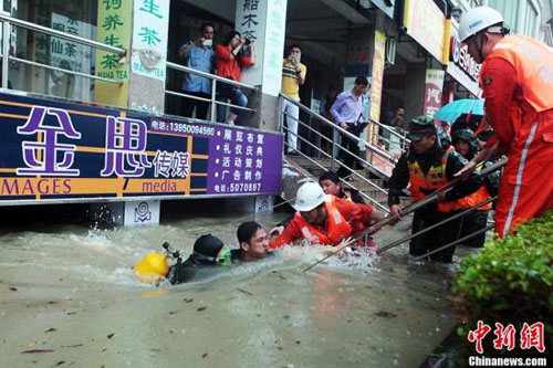 在福建廈門(mén),暴雨致地下商城被淹,一名男子被困10小時(shí)后獲救被潛水員成功救出。