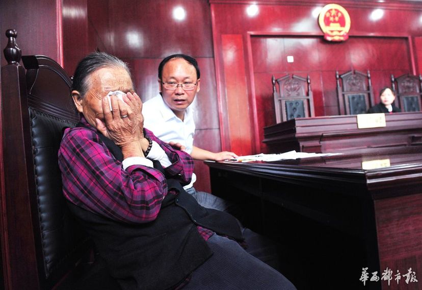 原告李蘭渝(化名)老人在法庭上失聲痛哭大喊“兒子忘了娘”。
