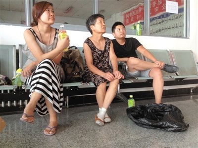 昨日下午,被搶女童家屬在派出所等待警方做筆錄。新京報記者李寧攝