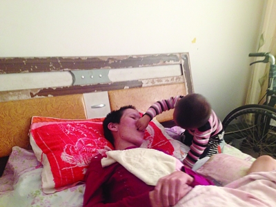 昨天上午,在沭陽縣城東夢溪小區一期一棟樓房的五樓,躺在病床上的張榮香和2歲多的兒子天賜時而相視而笑,時而張開嘴巴含住兒子小手遞過來的食物。見媽媽吃的困難,小天賜干脆把硬硬的小果子(當地一種油炸面食點心的名字)放在嘴里嚼碎,然后慢慢靠近媽媽張開的嘴,把嘴里的食物送到媽媽嘴里,如同燕媽媽喂食雛燕一般,這樣的場景著實令人動容。誰能想到三年前一場車禍,讓懷有身孕的張榮香曾一度處于深度昏迷狀態,在丈夫和女兒的照料下,她不僅成功生下了兒子,更在幼子的呼喚中清醒過來,及接連創造了生命的奇跡。