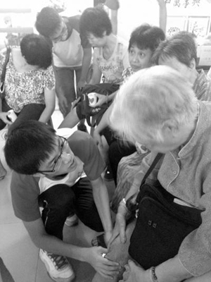 廣東中醫(yī)藥大學(xué)生命緣青年志愿者協(xié)會(huì)的志愿者們,則為老人提供健康服務(wù),發(fā)放健康小百科宣傳單,做換季養(yǎng)生講座,現(xiàn)場(chǎng)教授老人穴位按摩。 (記者 楊大正 實(shí)習(xí)生 葉碧云)