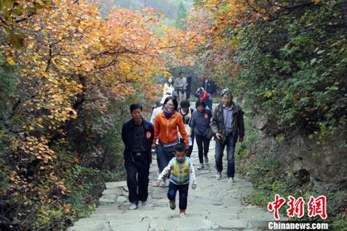 【原標題】重陽節太原99位老人攀龍山(圖)