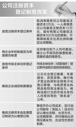 “注冊資本多少與公司實(shí)力密切相關(guān),過去用行政手段劃定注冊資本最低限度,存在的問題不少。”王光進(jìn)說,比如,一人有限責(zé)任公司最低注冊資本10萬元,不利于激發(fā)創(chuàng)業(yè)特別是大學(xué)生創(chuàng)業(yè)和小微創(chuàng)新科技企業(yè)發(fā)展,而部分公司為達(dá)到最低注冊資本限額,也存在虛假投資。“此次改革取消了注冊資本的相關(guān)限額,讓公司根據(jù)自身實(shí)力來登記,有多大實(shí)力做多大生意,其實(shí)是把選擇權(quán)交給了市場主體,符合市場經(jīng)濟(jì)的發(fā)展規(guī)律,特別有利于一些新技術(shù)、新業(yè)態(tài)、新產(chǎn)業(yè)的發(fā)展。”