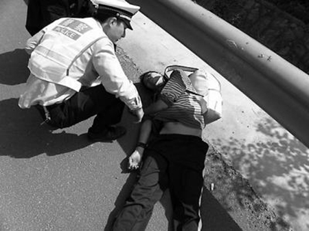 10月25日上午10時許,一名19歲小伙子昏倒在京臺高速(閩)下行1677km 500m處的緊急停車帶上。民警將其叫醒后,小伙子用微弱的聲音告訴民警,自己名叫張鳴,從江西鷹潭出發徒步走了8天8夜,想走回福州。話剛說完,張鳴又暈了過去。