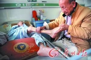 主管醫生何醫生感嘆,像曾伯那樣8年每天堅持非常難得。“按摩對臥床病人很重要,一是保護關節的柔韌性,二是刺激肌肉防止萎縮。一旦關節開始蜷縮就不可逆了。”