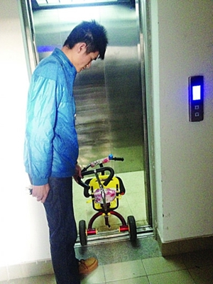 王先生介紹說,10月28日下午1點左右,他剛準(zhǔn)備出去辦事,突然間就聽妻子大叫:不好了,孩子被關(guān)在電梯里了,快救人!他沖出家門一看嚇得雙腿發(fā)軟:被夾得死死的嬰兒車的手柄上掛著妻子的包,懸在五層頂部,孩子在密閉的電梯轎廂里哇哇大哭。他拿出手機拍照后就邊報警邊喊救人。隨后,物業(yè)、電梯維修等人到場,他們直接到6樓打開電梯,跳到轎廂里,將孩子救了出來。