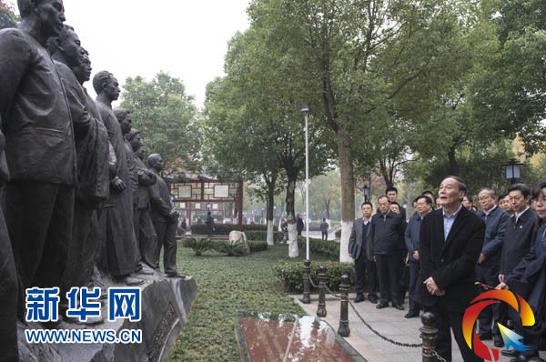 中共中央政治局常委、中央紀委書記王岐山22日下午在湖北省武漢市調研期間,專程來到中央監察委員會舊址,瞻仰第一屆中央監委10名成員雕像并敬獻花籃,深切緬懷革命先輩。