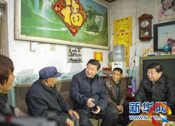 25日下午,習近平在地處沂蒙老區(qū)的臨沭縣曹莊鎮(zhèn)朱村看望83歲的“老支前”王克昌。 新華社記者謝環(huán)馳 攝