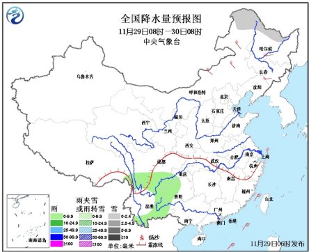 11月30日08時(shí)至12月1日08時(shí),新疆北部有小雪到中雪,四川南部、貴州西部、云南東部和南部等地有小雨或陣雨。內(nèi)蒙古中東部和東北地區(qū)等地的部分地區(qū)有4~5級(jí)風(fēng)。