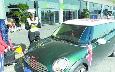 昨日上午,一輛泉州牌照的寶馬MINI小轎車到廈門機場候機樓接客,民警發現異常,該車車頂和車身上都貼著英國國旗。民警檢查車主的駕駛證和車輛行駛證,行駛證上的車輛照片與實際外觀不符。