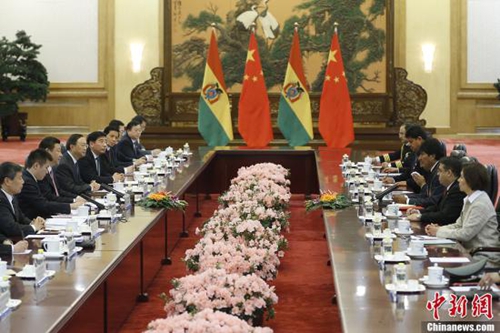莫拉萊斯表示,玻利維亞人民對(duì)中國(guó)人民懷有深厚的感情和信任,欽佩中國(guó)巨大的發(fā)展成就,贊賞中國(guó)發(fā)揮的負(fù)責(zé)任大國(guó)作用。玻利維亞正在推進(jìn)變革,發(fā)展經(jīng)濟(jì),擺脫貧困,改善民生,積極參與拉美一體化進(jìn)程。發(fā)展對(duì)華友好互利關(guān)系是玻利維亞外交的優(yōu)先方向。玻方祝賀中國(guó)共產(chǎn)黨十八屆三中全會(huì)成功召開(kāi),相信中國(guó)全面深化改革將為兩國(guó)合作帶來(lái)更大機(jī)遇。