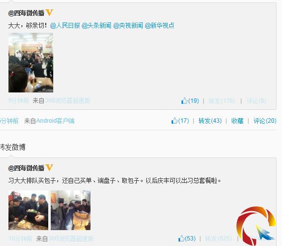 懷情如泉:習(xí)近平排隊(duì)買(mǎi)包子。光看標(biāo)題,就知道文風(fēng)也好了。沒(méi)有用許多最高領(lǐng)導(dǎo)人頭銜;再看內(nèi)容和照片,更感親切!這是很難得看到的實(shí)實(shí)在在以普通人身份自己花錢(qián),排隊(duì),買(mǎi)大眾套餐的國(guó)家最高領(lǐng)導(dǎo)人的寫(xiě)照。習(xí)總還被人們親切地稱(chēng)為習(xí)大大。共產(chǎn)黨人的好傳統(tǒng)、好作風(fēng)不變!贊!