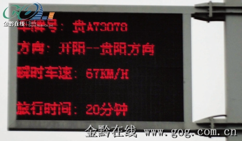 貴陽市公安交管局相關(guān)負(fù)責(zé)人告訴記者,為了對違章車輛進(jìn)行及時(shí)告知并警示更多的車輛,交管局在貴開路兩端出口處分別安裝了LED顯示屏。每輛車駛出貴開路時(shí),LED顯示屏上會顯示所駕車輛行駛方向、平均車速、旅行時(shí)間等信息,若車輛在本次行駛中有超速行為,顯示文字為紅色,同時(shí)顯示超速的瞬間車速,若無違章文字則為綠色。駕駛員可根據(jù)顯示信息對自己的行駛速度進(jìn)行調(diào)整。