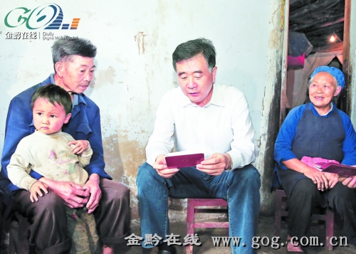 發(fā)恰村位于鎮(zhèn)寧自治縣募役鄉(xiāng)中部,是一個(gè)以布依族為主的少數(shù)民族村莊。近幾年,通村的公路修通了,農(nóng)民出行已經(jīng)十分方便,不少農(nóng)戶把地里種的生姜和山上種的櫻桃賣到城里,增加了收入,逐步走上了致富路。但總體上看,這個(gè)村的農(nóng)民收入還不高,一些人家生活還十分困難,整個(gè)村屬于二類貧困村,脫貧的任務(wù)仍然很重。汪洋來(lái)到發(fā)恰村,隨機(jī)走訪慰問了村里的孫田康、黃訓(xùn)云、齊少康、孫文權(quán)等四戶人家,和大家親切交談,查看低保、養(yǎng)老保險(xiǎn)發(fā)放和合作醫(yī)療費(fèi)用報(bào)銷等情況,了解他們生活得怎么樣。汪洋指出,黨中央、國(guó)務(wù)院對(duì)貧困問題高度重視,習(xí)近平總書記、李克強(qiáng)總理十分牽掛貧困群眾,多次就扶貧開發(fā)工作作出重要指示,目前中央正在研究扶貧開發(fā)的新模式、新舉措,將進(jìn)一步加大工作力度,千方百計(jì)幫助貧困群眾脫貧致富。
