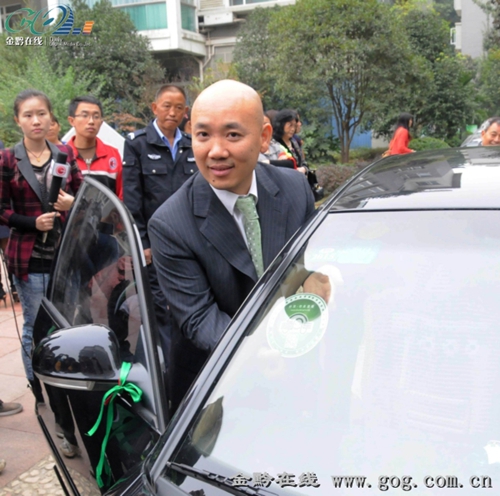 全國青聯(lián)委員、順風(fēng)車公益活動發(fā)起人王永為私家車粘貼順風(fēng)車車標(biāo)