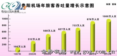 機場吞吐量,是衡量一個地區(qū)經(jīng)濟社會發(fā)展程度、文明程度、開放程度和活躍程度的重要標志。作為我省唯一的干線機場、唯一的航空口岸和對外開放的重要門戶,貴陽龍洞堡國際機場從1997年建成通航到2009年,歷時12年實現(xiàn)旅客吞吐量從100萬到500萬的階段性增長。從2009年到2013年,得益于貴州經(jīng)濟持續(xù)高速發(fā)展和對外開放活力不斷增強,旅客吞吐量僅用了4年時間就實現(xiàn)從500萬到1000萬的歷史性突破,為奔跑在同步小康征途的貴州裝上了強勁有力的“引擎”。